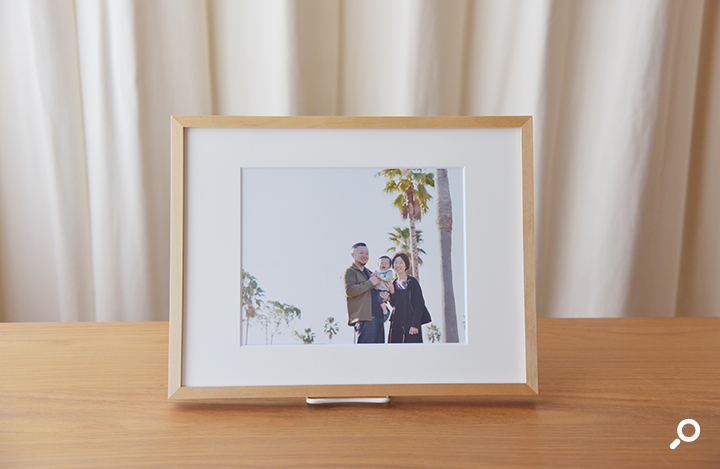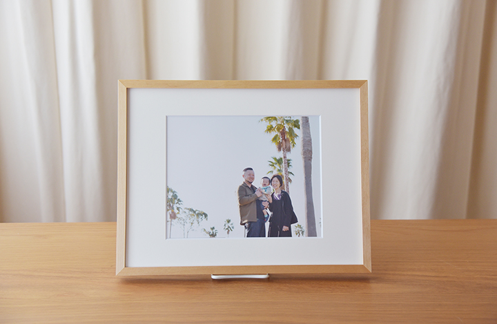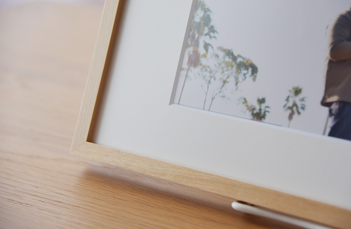 木肌の美しいバーチ材で作られた額で額装します。写真鑑賞に適した低反射加工のアクリル板を採用しているのでどの角度から見てもきれいに鑑賞できます。